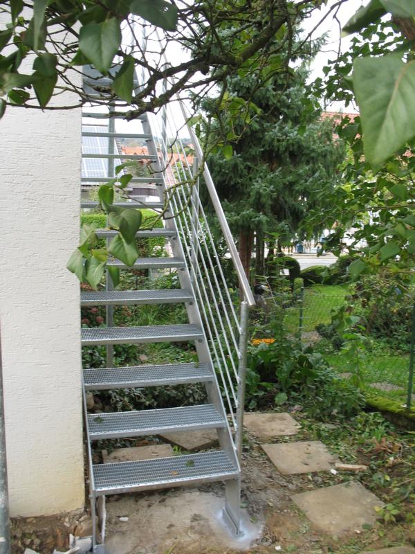 Stahlwange verzinkt mit Gitterroststufen und Edelstahl Handlauf